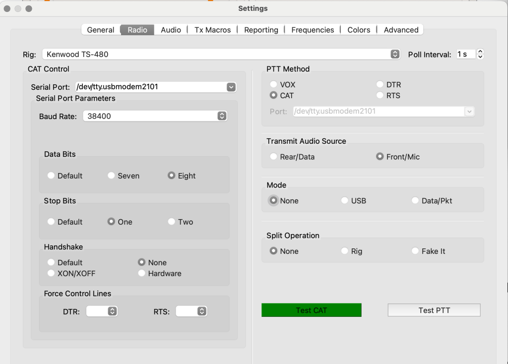 - Baud Rate = 38400 (the QMX guide states that this is an irrelevant setting, though).